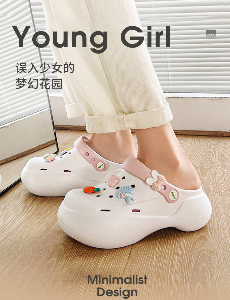 商品名称:乐拖【甜莓果茶】洞洞鞋女夏凉鞋拖鞋配饰户外沙滩厚底松糕白色35/36
